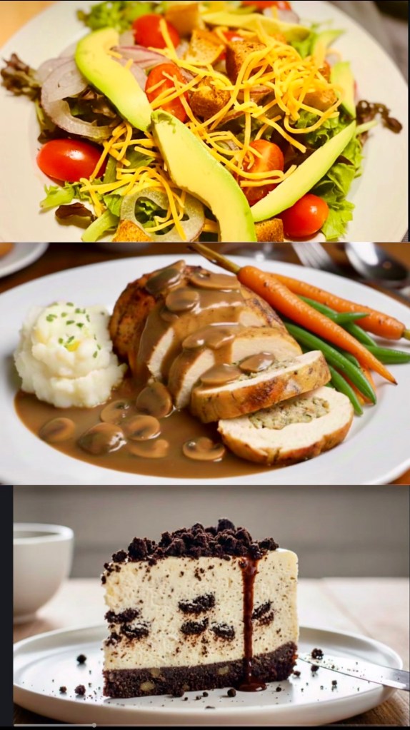 Artisan stuffed chicken roulade: Savory Beef & Botanical tender chicken breast wrapped around a rich filling of seasoned ground beef, sautéed baby spinach, and tangy sun-dried tomatoes. Pan-seared and oven-finished, served in elegant medallions topped with a bordelais mushroom gravy. Served with creamy mashed potatoes., string beans, and roasted carrots .